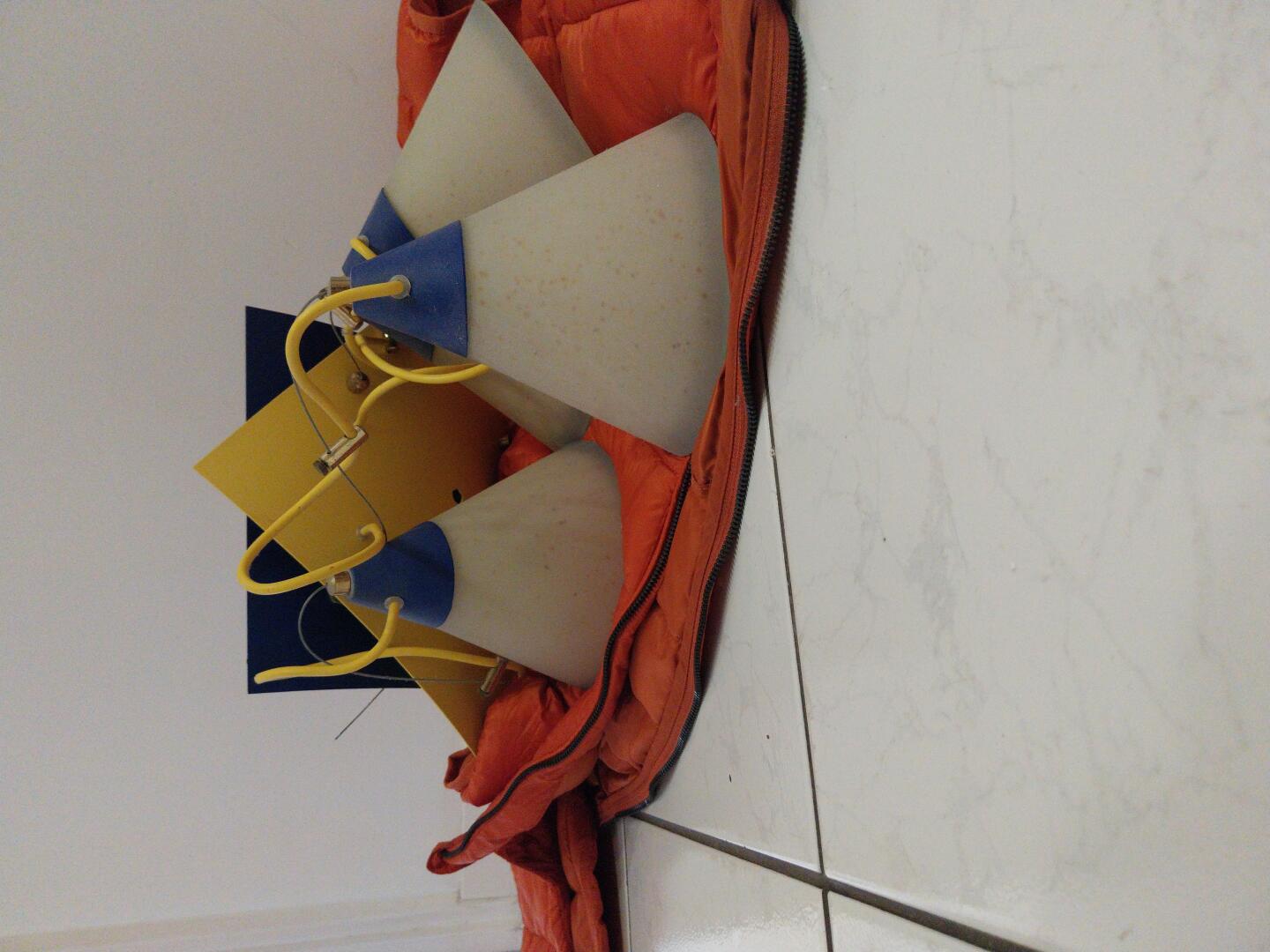Sprzedam żyrandol, niebiesko-żółty, stan bardzo dobry. Do odświeżenia.