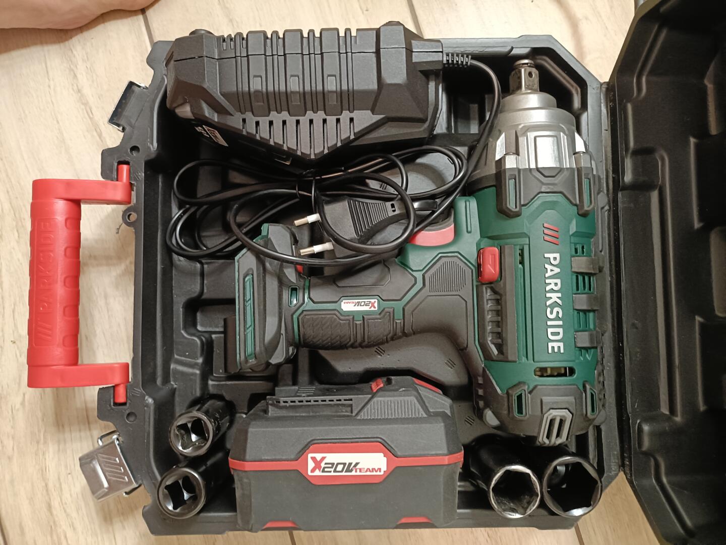 Klucz udarowy Parkside w wytrzymałej, plastikowej obudowie. Nadaje się do różnych zastosowań, takich jak montaż lub demontaż części samochodowych. Produkt niezawodny i łatwy w użyciu. 3 razy użyty i stwierdziłem że nie potrzebny jest na gwarancji paragon mam
