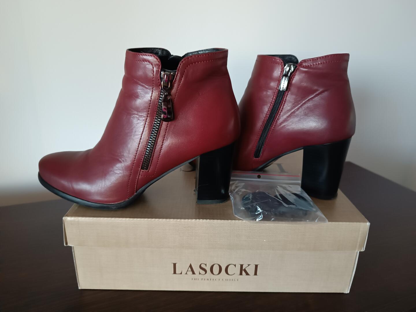 Sprzedam botki na obcasie rozmiar 38, fleki do butów w komplecie. Stan idealny. Cena 40zł.